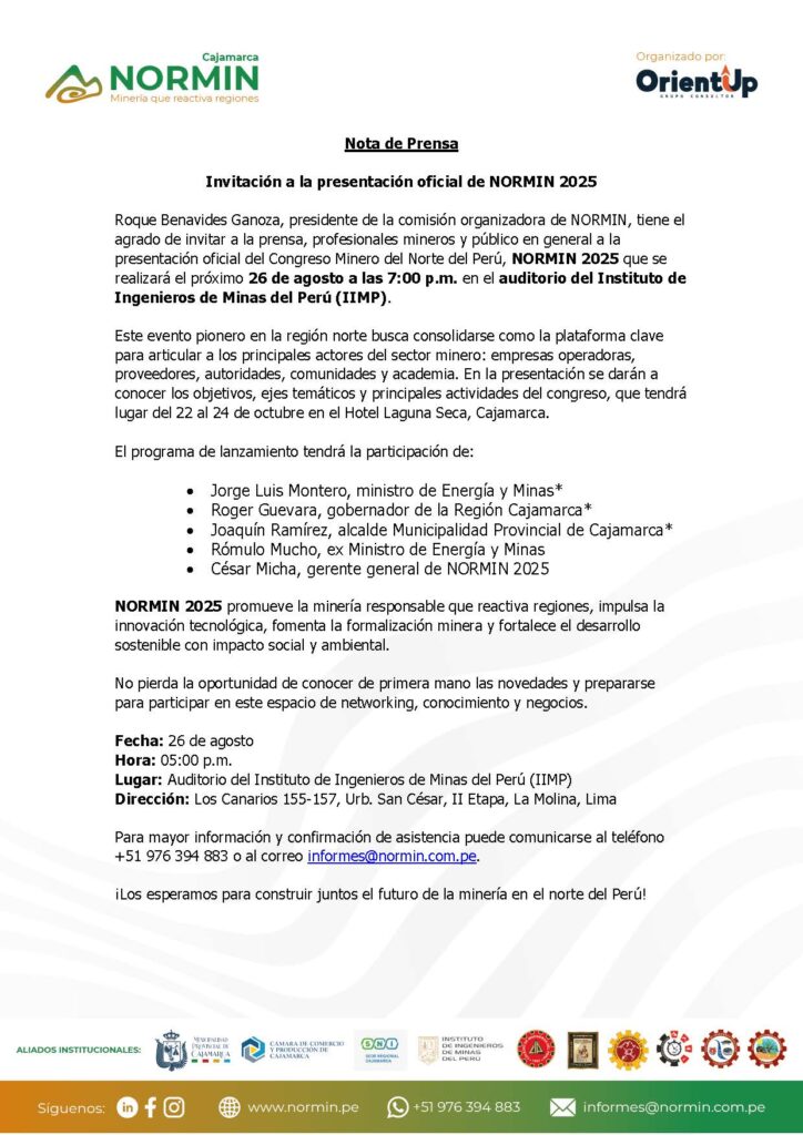 Finalmente, el ministro de Energía y Minas, Jorge Montero, señaló que el Gobierno promueve una minería climáticamente inteligente, inclusiva y descentralizada, apoyada en innovación y encadenamientos productivos. Destacó la formalización de más de 5.000 pequeños productores en 2025 y afirmó que EXTEMIN confirma la confianza en el Perú como destino de inversión e innovación minera.